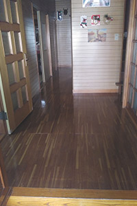ツヤがあり、色も明るすぎないので高級感のあるフローリングだと思います。